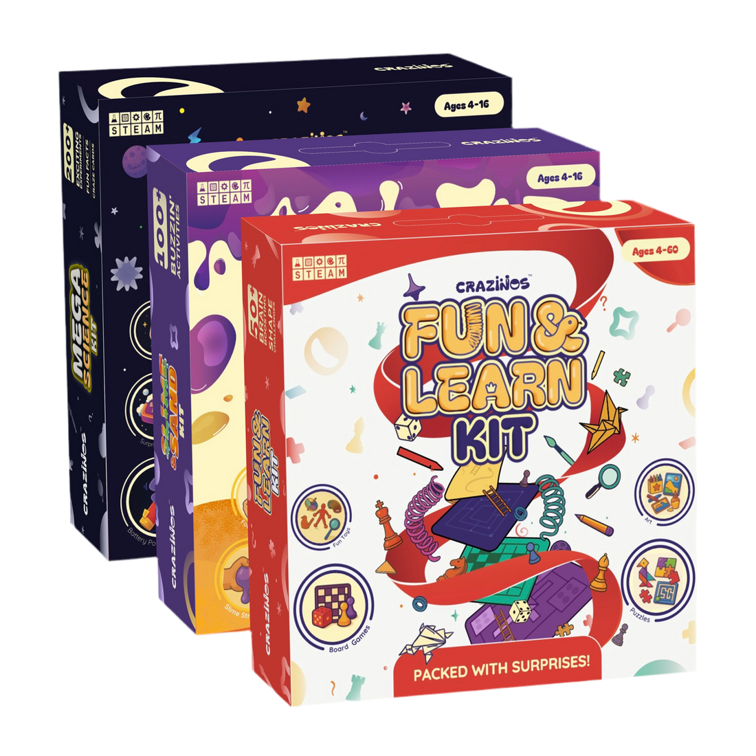 Pack of 3 Kits | Entire Family | Ages 4 to 60 | 350+ Experiments, Games and Hands-On activities