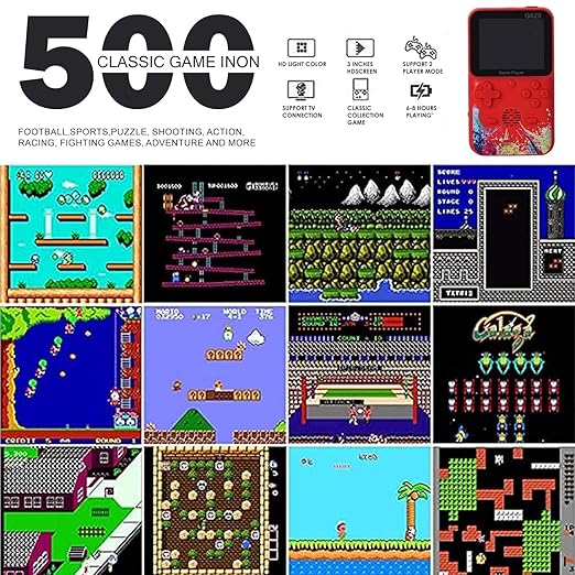 Relive the golden era of gaming with this retro handheld gaming console, preloaded with 500 unique classic games that never repeat. Designed with a soft light HD eye-protection screen, it ensures comfortable play for kids and adults alike.